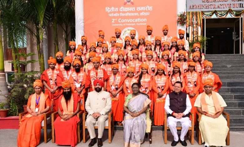राष्ट्रपति द्रौपदी मुर्मु ने पतंजलि विश्वविद्यालय हरिद्वार के द्वितीय दीक्षांत समारोह में स्वर्ण पदक प्राप्त विद्यार्थियों को सम्मानित किया। आज इस कार्यक्रम में कुल 1,454 विद्यार्थियों को उपाधि प्रदान की गई। 62 शोधार्थियों को विद्या वारिधि और 3 शोधार्थियों को विद्या वाचस्पति की उपाधि प्रदान की गई, जबकि 615 विद्यार्थियों को परास्नातक और 774 विद्यार्थियों को स्नातक की उपाधि प्रदान की गई। इस अवसर पर राज्यपाल लेफ्टिनेंट जनरल गुरमीत सिंह (से. नि.) ने राष्ट्रपति को राष्ट्रपति भवन की विविध वनस्पतियों पर आधारित दो पुस्तकें ‘फ्लोरा ऑफ राष्ट्रपति भवन’ एवं ‘मेडिसिनल प्लांट्स ऑफ राष्ट्रपति भवन’ की प्रतिलिपियां भी भेंट कीं।