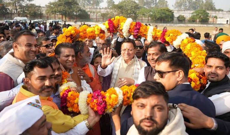 CM पुष्कर सिंह धामी का किसान सम्मान: फूल-माला और गन्ना भेंट कर किया स्वागत